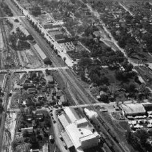 Aerial view of Live Oak, Sutter County, California. The Walnut Growers Association Plant can be seen at the bottom center.