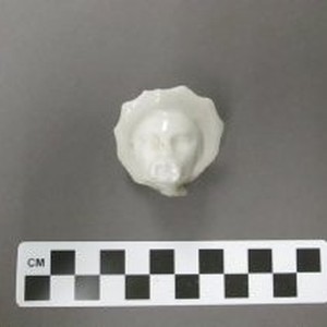 Porcelain male head wearing a hat with defined Asian Features.