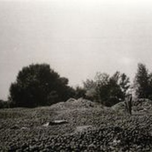 Photo--black and white, mounted: The Yakima, Washington public dump of excess apple crop. Photo by Oscar Hallberg. 1950