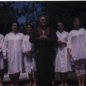 Photograph of baptizer and seven people clothed for baptism, Life Church association of Donetsk-Luhansk, Ukraine, [1990?-2008?]. [Description English/roman)] Фотографія крестителя и семь человек одет для крещения, Жизнь церквей Донецка-Луганского объединения, Україна, [1990?-2008?]. [Description (original non-English/roman language/script)]