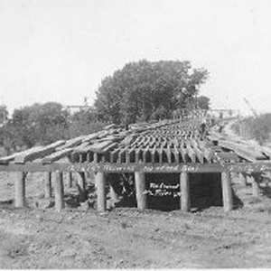 "Placing stringers on east trestle approach."