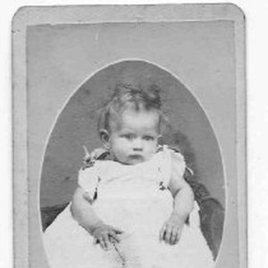Full body portrait of baby in dress (boy or girl?).