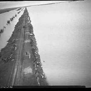 Flood - Yuba, Marysville, Sac. Levee repair work. (Aerial) 1955