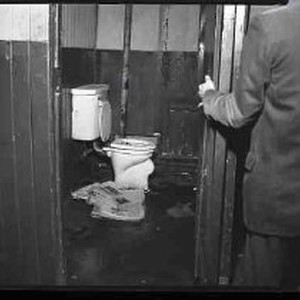 1952 - West End series. Toilet with man holding door open for photographer. 13 of 27