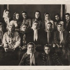 Young people of the village, church EEF Nikitovka Gorlovka Donetsk region in 1948. [Description English/roman)] Молодёжь церкви ХЕВ поселка Никитовки Горловского района Донецкой области 1948 год. [Description (original non-English/roman language/script)]