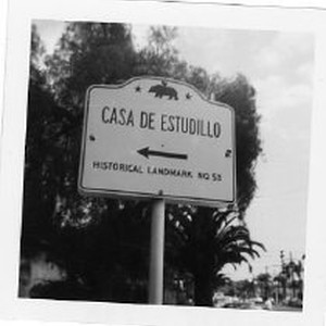 View of the plaque for the Casa De Estudillo, in Old Town San Diego, Landmark #53