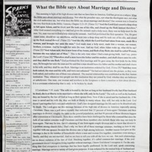 The official publication of the Gospel spreading church of God. This 12 page issue features "What the Bible says About Marriage and Divorce," Genesis, 2:21-25 I Corinthians 7:39 Hebrews 13:4, etc. by Walter D. Roman. Each issue has a "Letters from our Readers section," "Calling All Youth," "The Holy Bible Word Puzzle," and "Sunday School Lessons for the Month." Lightfoot S. Michaux, founder, known as the Radio Preacher and Mary E. Michaux, co founder. The center fold "in Memoriam" over 30 names of members with pictures. [Description English/roman)]