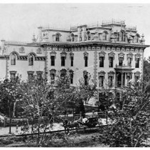 Image / Stanford Home exterior view with horse-drawn carriage in front
