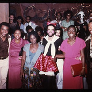 Image from a collection of 35mm photographic slides depicting nightlife events, circa 1970-1977, including images of a Sylvester concert and what may be Halloween 1977. The images predominantly depict Black performers and attendees, including people in costumes and drag. These slides were salvaged by the donor, Deborah Deegan.