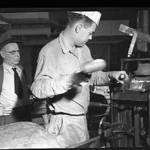 SERIES. Views of a man watching another man as he works on the new Sacramento Bee press.
