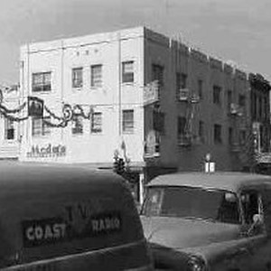Coast Radio store delivery van parked on a downtown Sacramento street; probably near the store at 900 J Street.