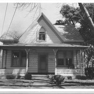 Photo, black and white: Sebastopol house at 171 North High Street, a Gothic Revival built about 1865 in the Morris Addition. Known as the Joseph Morris Home . House photographed in 1993 by Evelyn McClure for her book "Sebastopol, California : History, Homes and People."
