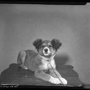 1964 - Alert dog on table.