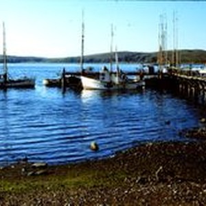 Slide, color transparency: Boats at Bodega or Tomales Bay, 1975.