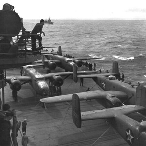 World War II Pacific Theater of Operations PTO Doolittle Raid USAAF Aviation Aircraft Airplane Military Aviation Bomber North American Aviation North American NAA North American B-25 Mitchell North American B-25 North American Mitchell B-25 Mitchell Mitchell Bomber B-25 North American B-25B Mitchell North American B-25B B-25B Mitchell B-25B Wright Aeronautical Wright Wright R-2600 Twin Cyclone Wright Twin Cyclone Wright R-2600 R-2600 Twin Cyclone Wright R-2600-9 R-2600-9 Flight Deck Ship Warship Aircraft Carrier United States Navy US Navy USN Naval Aviation USS Hornet (CV-8) USS Hornet CV-8 Yorktown-class Sunk Sunk 1942 Battle of Santa Cruz Battle of the Santa Cruz Islands