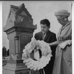 Jack L. Odbert and Mrs. Andrew Johnson, members of the Ann Land and Bertha Henschel Memorial Fund Commission, placed a wreath at the tomb of Miss Henschel... She died in 1852, leaving $278,000 to aid indigent Sacramento families. The commission members are appointed by the city council.