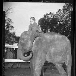 Zoo - Elephant with small boy riding on his back.