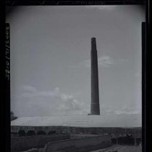 Brickyard smokestack built in 1890. Dynamited 5/19/49 1 of 3