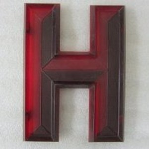 Plastic marquee letter "H." Dark red with brackets on backside for mounting on marquee sign. Number of H's: 6