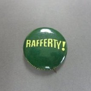 Neon green text on green background. "Rafferty!" Max Rafferty served two terms as CA State Superintendent of Public Instruction & ran for Senate in 1968 (lost)