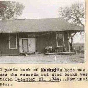 Pedigree house, a small building to house records and stud books for thoroughbred horses. No location given, but is next to the Mackey Home photo and in a series of North Sacramento.
