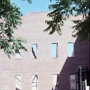 Old Sacramento. View of the Pacific Stables building on the corner of Second and L Streets. This view is of the site during reconstruction.