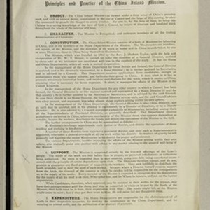 Document outlining mission values and code of practice governing missionaries and members of CIM. [Description English/roman)]