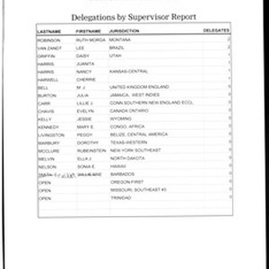 Delegations by supervisor report, Women's International Convention, Church of God in Christ, 2000 May 30. [Description English/roman)]