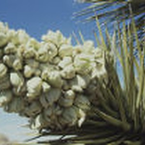 A close up of the flower of a Joshua tree.