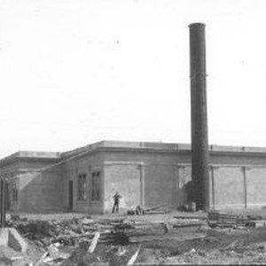 View of the "City Sump" under construction. Construction materials in foreground.