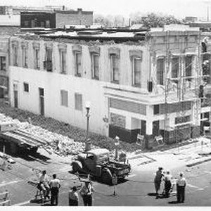 Exterior view of the Torch Club on the northeast corner of 6th and J Streets just after the top portion of the wall gave way killing one and injuring three in 1948.