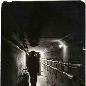 Handwritten on the back of the photo "Chas Borbna (sic) in Capitol Tunner feb. 20th, 1941" View of a man silhouetted in a dark tunnel.