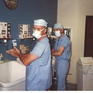 Photo--At the scrub sinks in Palm Drive Hospital are Dr. William Dunn, OBGYN from Santa Rosa, left, and Dr. Richard Powers, right, about 1980