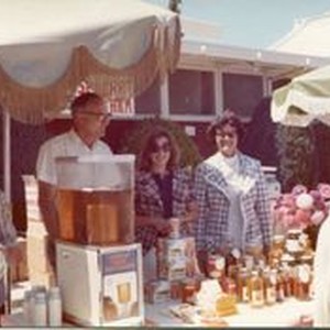Photo--color: At the Gravenstein Apple Fair, 1974 held at the Enmanji Buddhist Temple in Sebastopol. L-R: Mrs. Phil LeBlanc, Phil LeBlanc, Donna Louise Hallberg, Marcia Nell Hallberg.