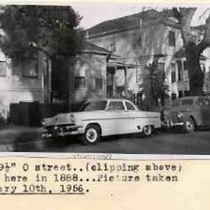 Typed on binder page "709 1/2" O street..(clipping above) Moved here in 1888...Picture takne February 10th, 1956."