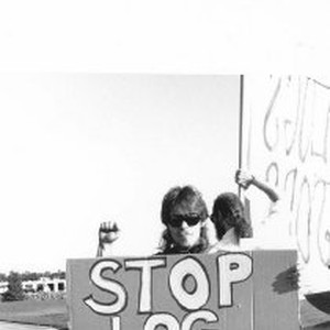 Young activist holds up sign, "Stop Log Exports." Part of the "No on 138" campaign to stop cutting ancient forests.