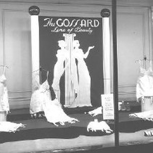 Window display of women's girdles by Gossard at Weinstock's.