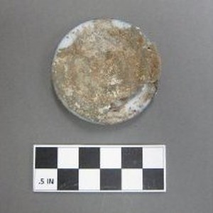Remnants of mason canning jar lid. Uncovered in archaeological context during R Street Monitoring Project conducted by PAR Environmental Services in 2012