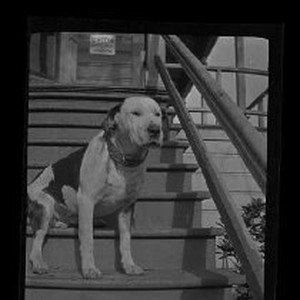 SERIES: Twelve views of the dog "Spot" out in the yard, on the porch, and on a bridge. Photographer Ralph Shaw took the views.
