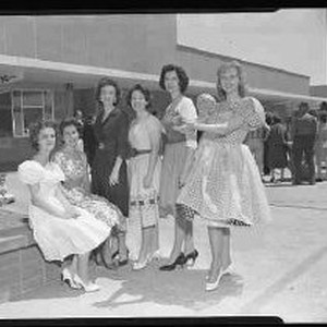 SERIES of four pictures of the Southgate Shopping Center at Franklin and Florin Rds. Unidentified men and women are participating in the Jumping Frog Contest.