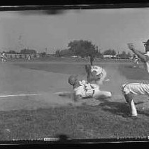 1966 - Baseball - Close play with runner sliding into base.