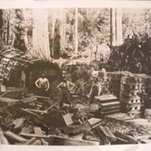 Photo--black and white: Redwood split makers (shakes). Mendocino County.