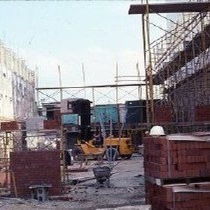 Old Sacramento. View of the Pacific Stables building on the corner of Second and L Streets. This view is of the site during reconstruction.