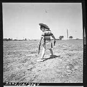 Little boy with cowboy hat and "six-shooters".