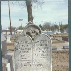 Headstone in Old City Cemetery: "Infant daughter, Died Feb. 14, 1873 Aged 1 day. Walter R. Died Apr. 13, 1873 Aged 27 years. Children of W. T. and S. A. King." Lot 1377-A19. Double marker. Signed: A. Aitken, Sacramento.