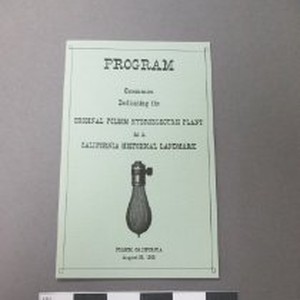 Program for dedication ceremonies of Folsom Hydroelectric Plant as a California Historical Landmark.