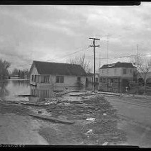 Flood -Yuba City digs out - residential damage. 12/28/55