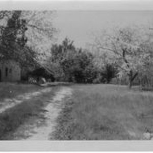 Photo--color: Burbank's Gold Ridge Experiment Farm--south face with barn, 1953, Spring. Trees in blossom see at right. Kodacolor