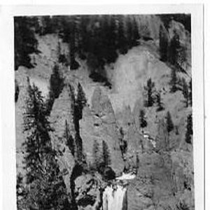 "Firehole River Falls near Old Faithful" geyser in Yellowstone National Park. Located near West Entrance to the park at the Idaho border. Visible from the highway.