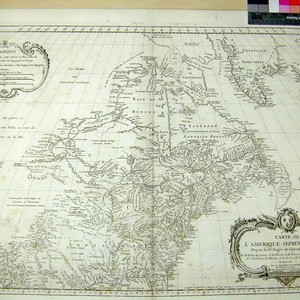 Paper watermark suggests publication date of 1782 or later. Sticker on old folder 984. Cartouche: Royal shield. "Prix. trente Sols. No. 56 (upper right)" "Depuis le 28 Degré de Latitude jusquau 72. Par M. Bellin Ingenieur de la Marine et du Depost des Plans, Censeur Royal, de l'Academie de Marine, et de la Societé Royale de Londres. MDCCLV." Prime meridian: Paris, Ferro. Relief: pictorial. Graphic Scale: Leagues, Miles. Projection: Azimuthal. Watermark: FIN TAMI... 1782, Crowned bird. Printing Process: Copper engraving. Other Features: Cartouche. Verso Text: MS note: 192568.